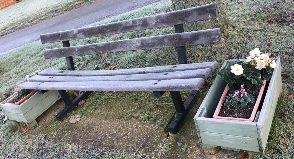 As in so many places a bench sits in quiet solitude – inviting – almost begging – to be sat upon. I long to sit – would relish that opportunity – that chance to reflect – to feast my eyes upon the creation I see around me – to drink in the quiet – yet – the morning is frosty – icy fingers reach for me – so I pass by – continue on my walk.