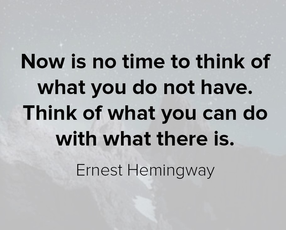 As this quote by Earnest Hemingway says – “Now is no time to think of what you do not have – think of what you can do with what there is”.
