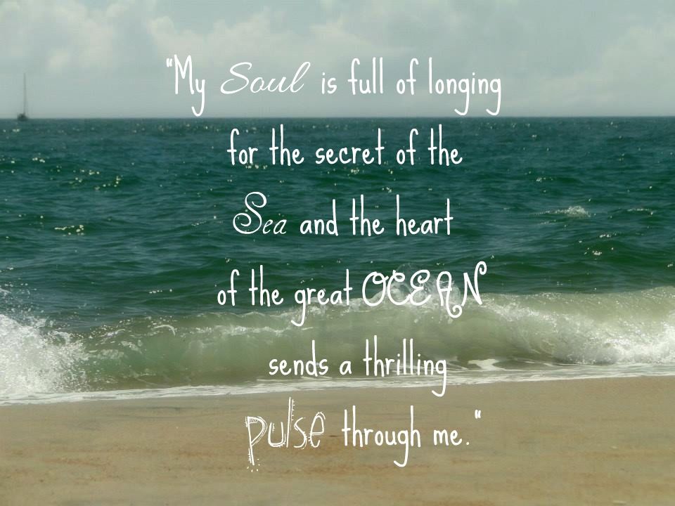 “My soul is full of longing for the secret of the sea – and the heart of the great ocean sends a thrilling pulse through me”