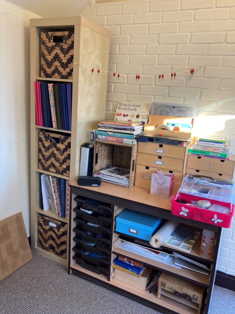Here I can sit – and simply relax in the quiet – enjoy a coffee – and be ready to pick up on any craft I fancy – whenever I want. It blesses me so much – that I can choose to begin and finish whenever I want to – without having to unpack – or put everything away each time.