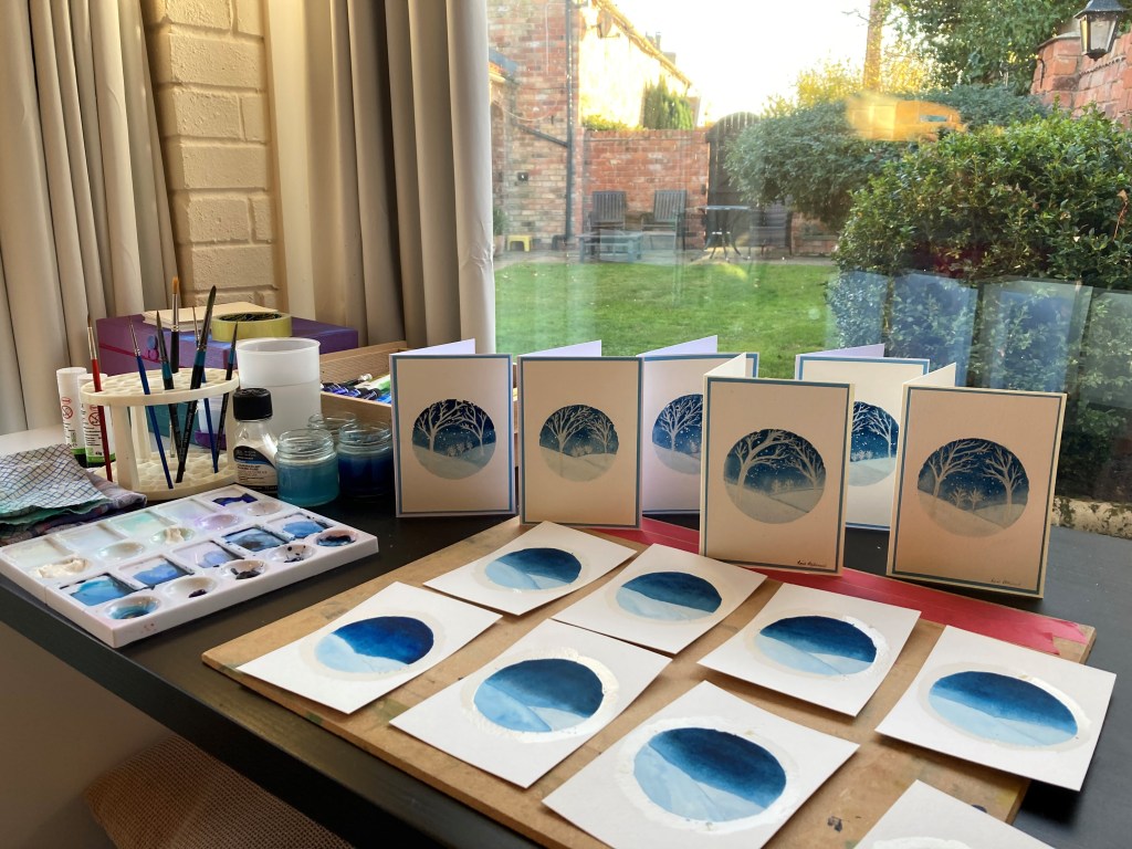 At the moment I’m working on some water colour cards for Christmas. I’m still very much a learner in this field – but so enjoying the challenge.