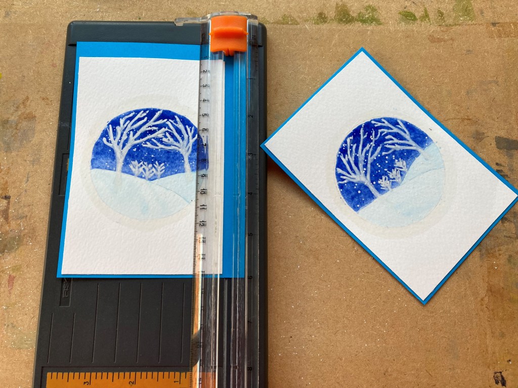 From the first background colour – to the painting in of more detail – then the mounting – sticking and cutting – until each picture was ready to be made into a card.