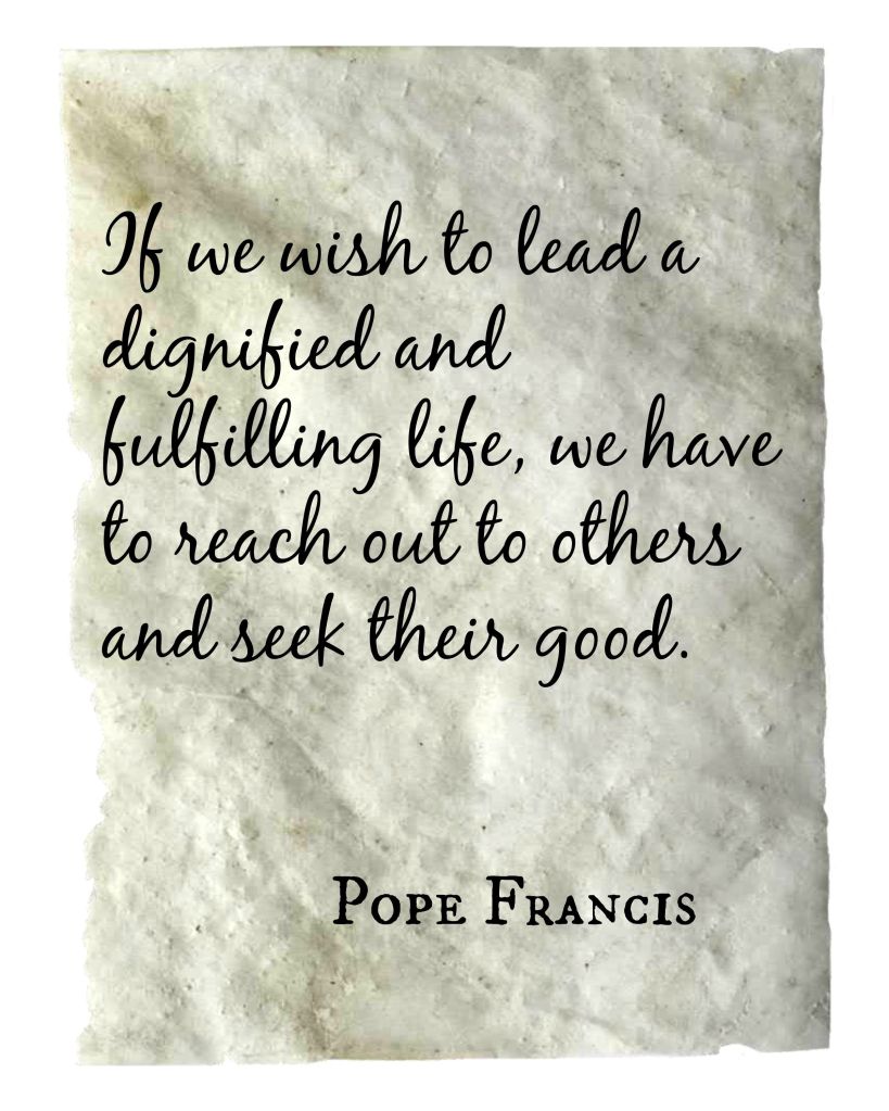 This quote from Pope Francis has real meaning – “If we wish to lead a dignified and fulfilling life – we have to reach out to others – and seek their good”