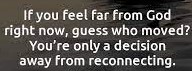 There are times when the connection seems to fail – the signal is weak – I struggle to connect – yet I recognise that it’s never God Who has moved – rather that maybe I need to move – to change my position – move away from the things that would hinder – stand in the way – or simply distract me – as this quote says -“If you feel far from God right now – guess who moved – you’re only a decision away from reconnecting”