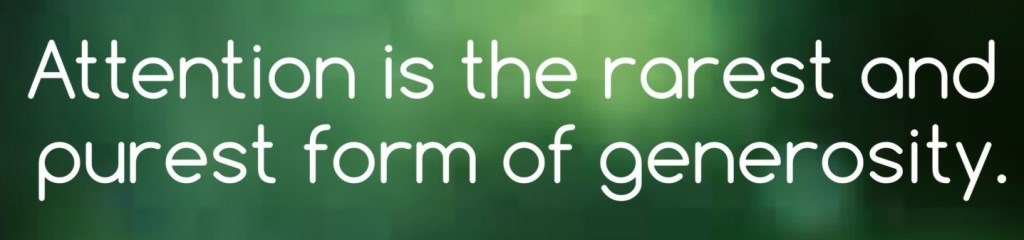 As this quote says – “Attention is the rarest – and purest form – of generosity”