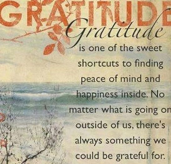 I love this quote that says – “Gratitude is one of the sweet shortcuts to finding peace of mind – and happiness inside – No matter what is going on outside of us – there’s always something we could be grateful for”