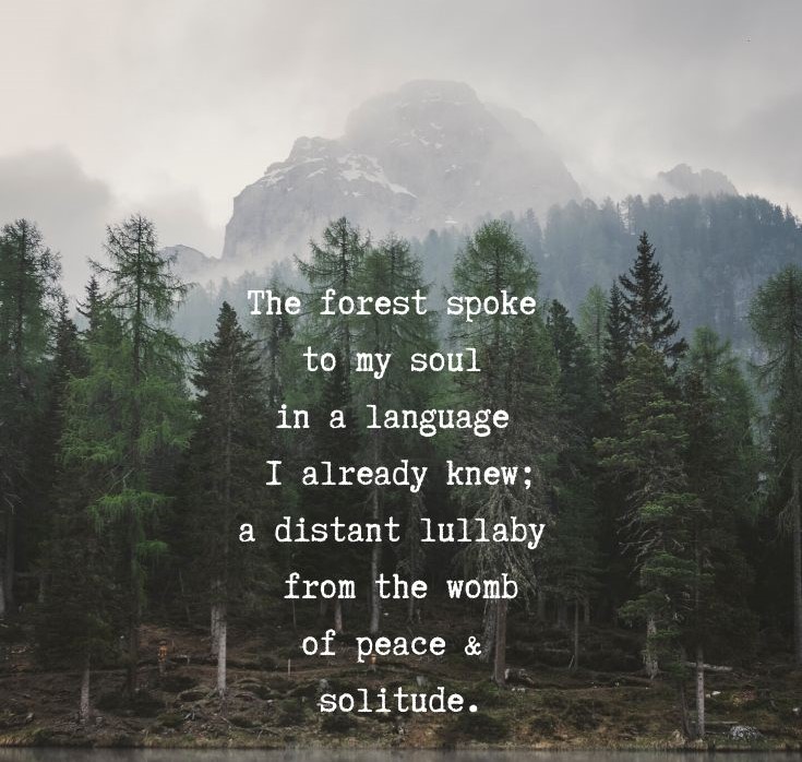 I love the way this quote puts it – “The forest spoke to my soul – in a language I already knew – a distant lullaby – from the womb of peace and solitude”