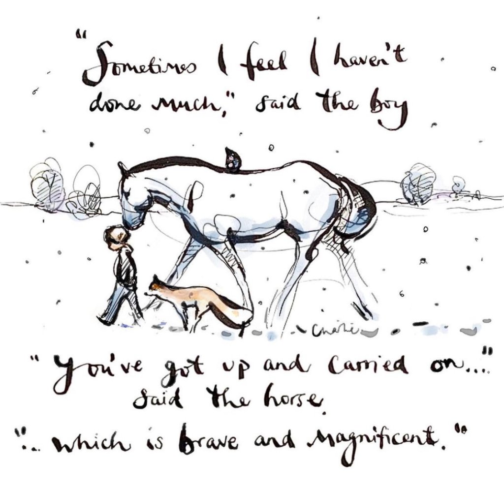 Only the other day this quote of his resonated with me – “Sometimes I feel I haven’t done much – said the boy – You’ve got up and carried on – said the horse – which is brave and magnificent”