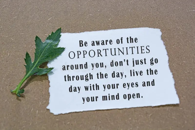 And so – I want to – as this quote says – “Be aware of the opportunities around you – don’t just go through the day – live the day – with your eyes – and your mind – open” – and in doing so -become more intentional – far more aware – that small opportunities are mine for the taking – if I can learn to recognise them.