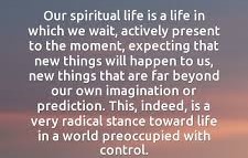 Faith has always been important to me – that spiritual connection means so much – and I love how someone once put it – “Our spiritual life - is a life in which we wait – actively present in the moment – expecting that new things will happen to us – new things that are far beyond our own imagination or prediction – this indeed is a very radical stance towards life in a world preoccupied with control”