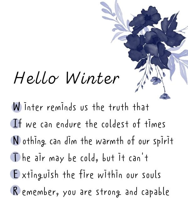 For as this quote says – “Winter reminds us the truth that – If we can endure the coldest of times – Nothing can dim the warmth of our spirit – The air may be cold – but it can’t – Extinguish the fire within our souls – Remember – you are strong and capable”