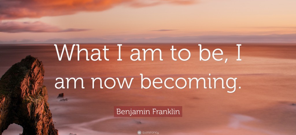 Someone once said – “What I am to be – I am now becoming” – and I love that.