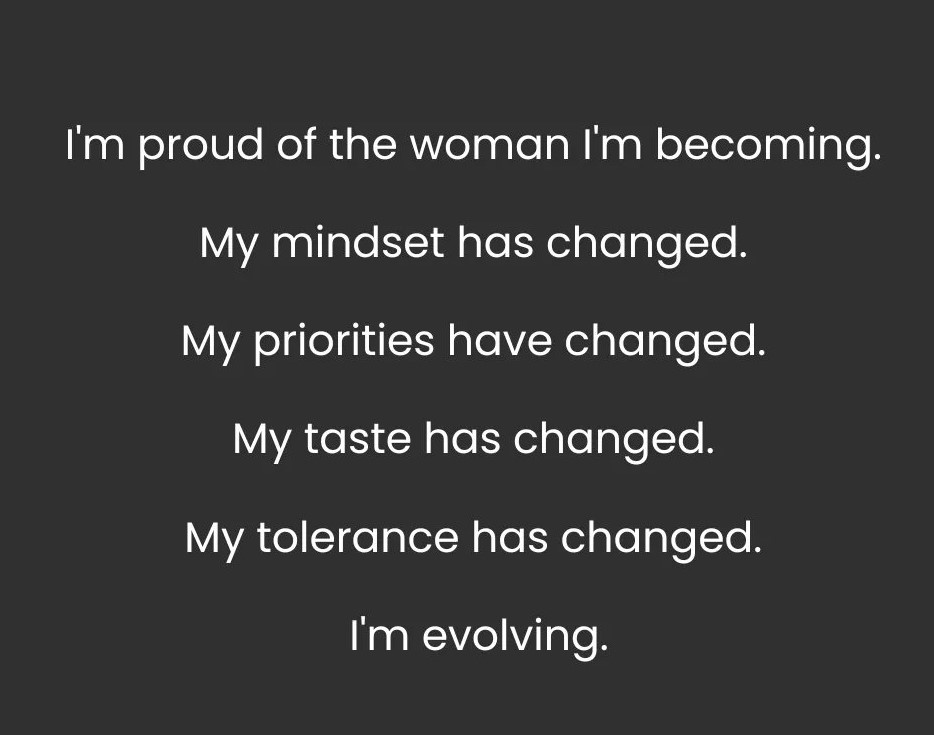I am loving the journey I find myself on – a journey of new discoveries – of changed perspectives – and – as quoted here – “I’m proud of the woman I am becoming – my mindset has changed – my priorities have changed – my taste has changed – my tolerance has changed - I’m evolving”.