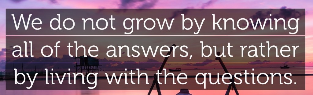 Of course – not all my questions get answered – but for me – that is part of life too – for – “We do not grow by knowing all the answers – but by living with the questions”.