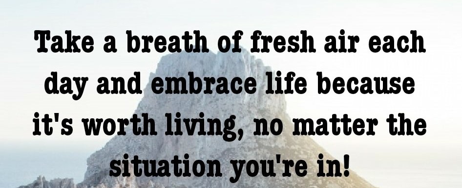 So many times I have experienced the truth in this statement – “Take a breath of fresh air each day – and embrace life – because it’s worth living – no matter the situation you’re in”. Even during some of the darker days – the difficult times – a walk in the fresh air – with space to breath – somehow puts things into perspective – and does show me how precious life is.