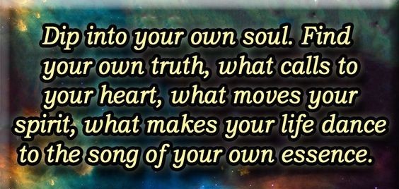 I love this quote here – “Dip into your own soul – find your own truth – what calls to your heart – what moves your spirit – what makes your life dance to the song of your own essence”