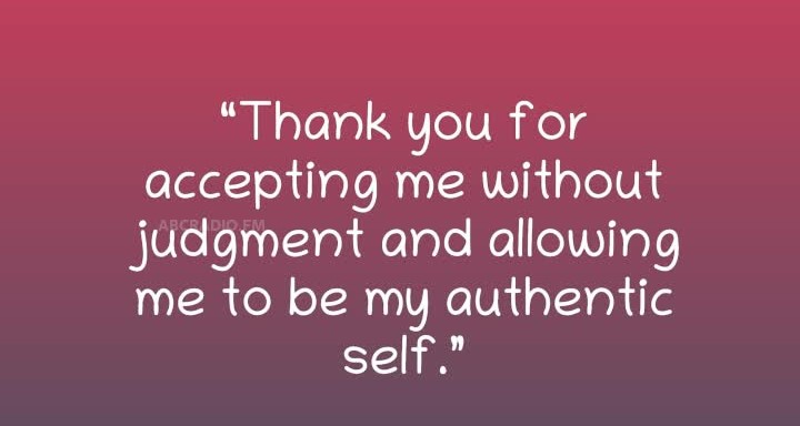 I am so grateful – for those in my life who have respected my choices – even if they may not have completely agreed – or understood – why those choices were made. And – as I continue- making choices – on my journey – becoming more true to myself – I say – “Thank you – for accepting me without judgement – and allowing me to be my authentic self”.