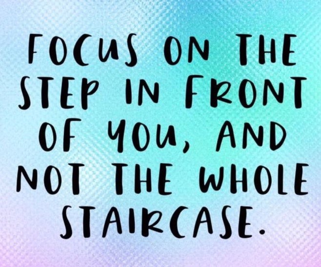 But – as always – I was drawn to the lessons that I can learn – from the simplest occurrences in my day to day life – and the whole concept of needing to ‘put one foot in front of the other’ – emphasised so much for me – like the importance of focusing – on each step – “Focus on the step in front of you – not the whole staircase”.