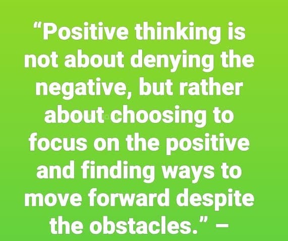 But – “Positive thinking is not about denying the negative – but rather about choosing to focus on the positive – and finding ways to move forward – despite the obstacles“.