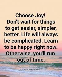 I need to remember – to ‘tip her a nod’ – or – as this quote puts it – to – “Choose joy – don’t wait for things to get easier – simpler – better – life will always be complicated – learn to be happy right now – otherwise – you’ll run out of time”.