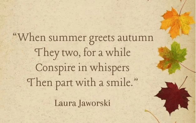 I love this quote – “When summer greets Autumn – they two – for a while – conspire in whispers – then part with a smile”. It’s almost as though – they are agreeing to save some surprises for us – or at least – that’s what came to mind when I read it.