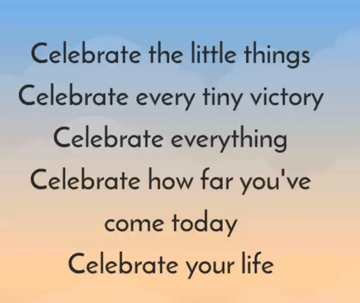 So – I will seek to do as suggested here – “Celebrate the little things – celebrate every tiny victory – celebrate everything – celebrate how far you have come today – celebrate your life”.