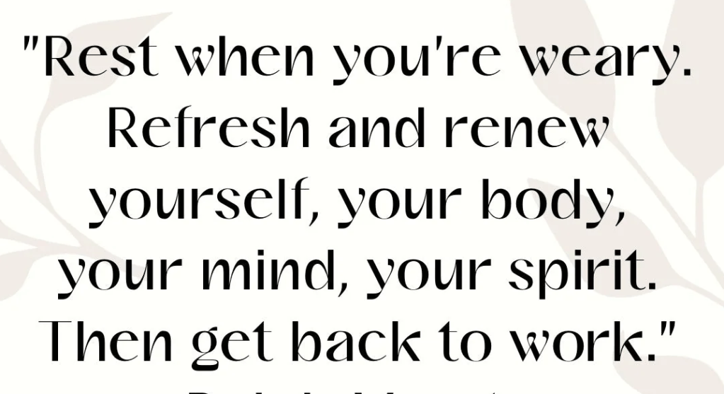 As so aptly put here – “Rest when you’re weary – refresh and renew yourself – your body – your mind – your spirit – then get back to work”