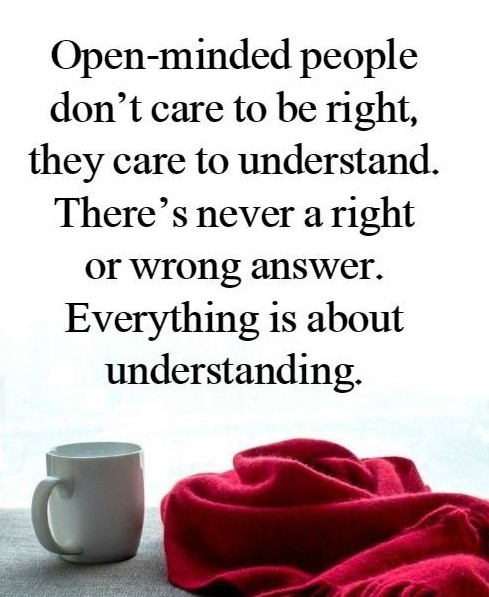 I love this quote – “Open minded people don’t care to be right – they care to understand. There’s never a right or wrong answer – everything is about understanding”.