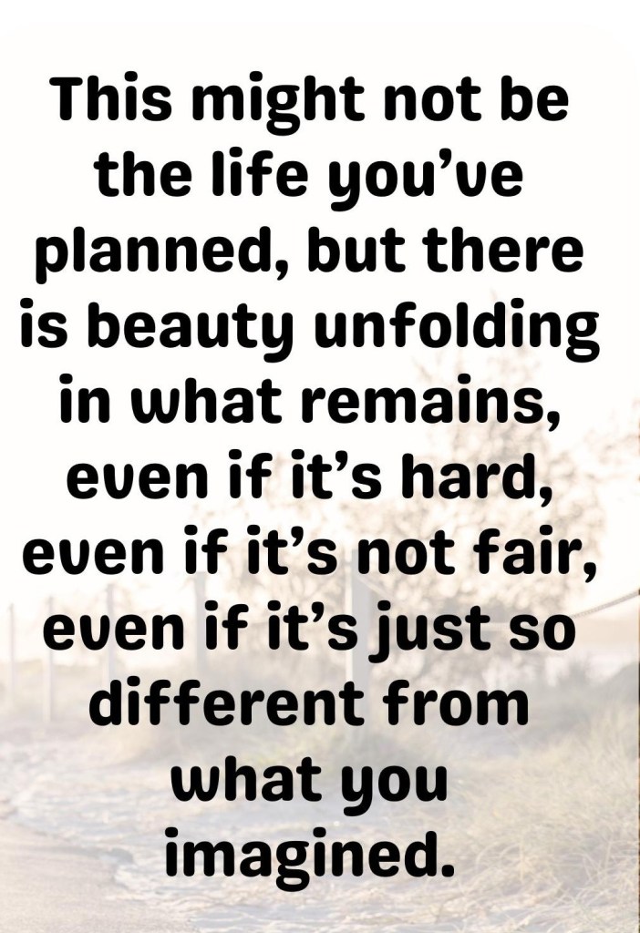 The process of course can be hard – a challenge – just like the puzzle I was doing – not knowing the outcome can be difficult too – and – “This might not be the life you’ve planned – but there is beauty unfolding in what remains – even if it’s hard – even if it’s not fair – even if it’s just so different from what you imagined.”