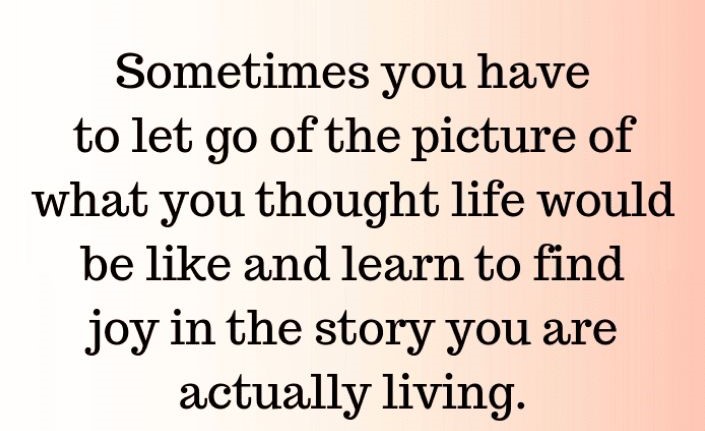 I love how this quote puts it – “Sometimes you have to let go of the picture of what you thought life would be like – and learn to find joy in the story you are actually living.”