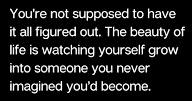 To quote – “You’re not supposed to have it all figured out – the beauty of life – is watching yourself grow into someone you never imagined you’d become.”