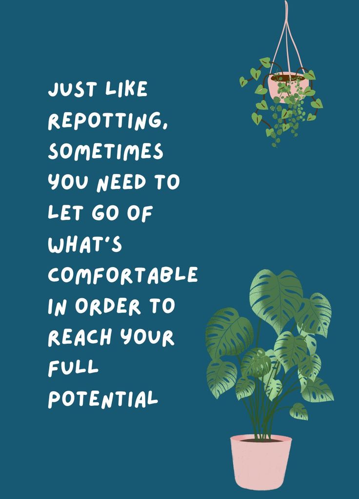 But – in order to grow and thrive – it’s sometimes necessary – for a repotting to take place – and that can mean that – “Just like repotting – sometimes you need to let go of what’s comfortable – in order to reach you full potential”.