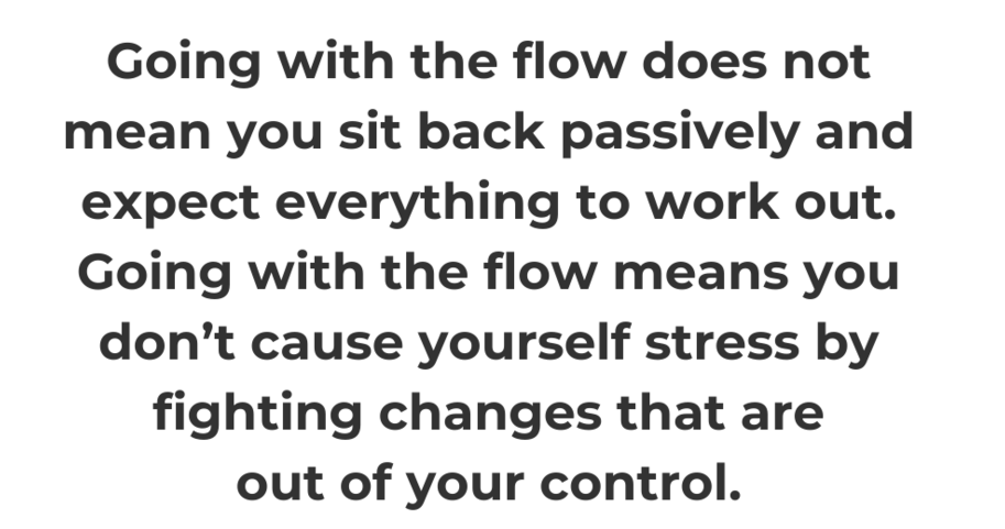 Of course – going with the flow does not mean that I just sit back and allow things to happen – as someone put it here – “Going with the flow does not mean you sit back passively – and expect everything to work out. Going with the flow – means you don’t cause yourself stress – by fighting changes that are out of your control”.