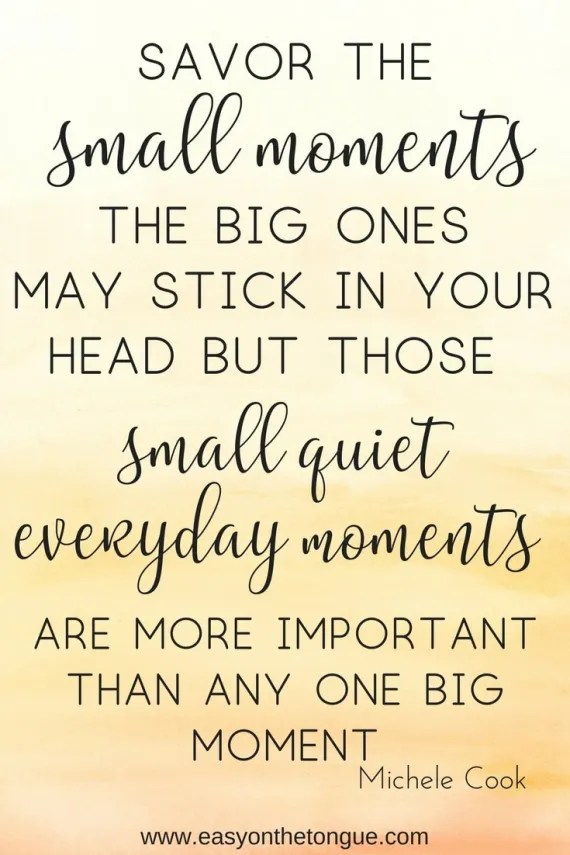 Someone once said – “Savor the small moments – the big ones may stick in your head – but those small quiet everyday moments – are more important – than any one big moment”.