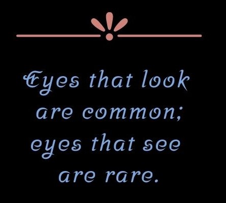 How true this quote is – “Eyes that look – are common – – eyes that see – are rare”.