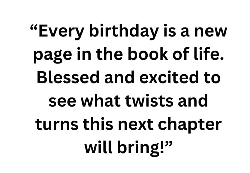 I love how this quote puts it – “Every birthday is a new page in the book of life – I am – blessed and excited to see what twists and turns this next chapter will bring”.
