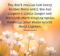 Sometimes – “You don’t realise how heavy the Winter feels – until the sun lingers a little longer – and the birds start singing again. Suddenly – your whole spirit feels lighter”.